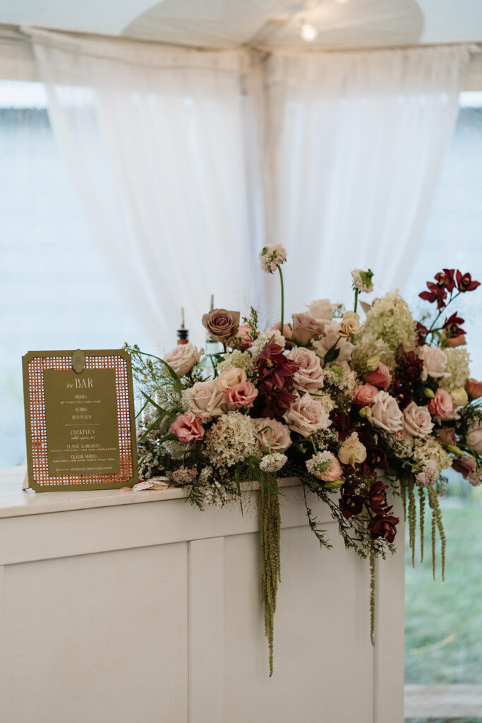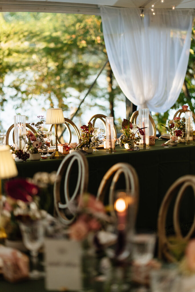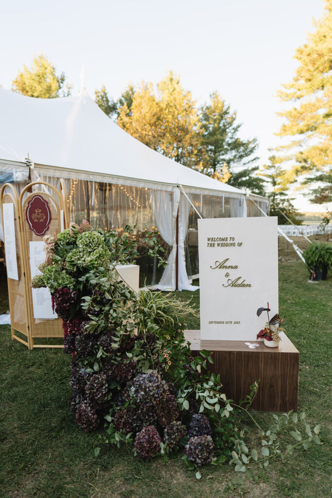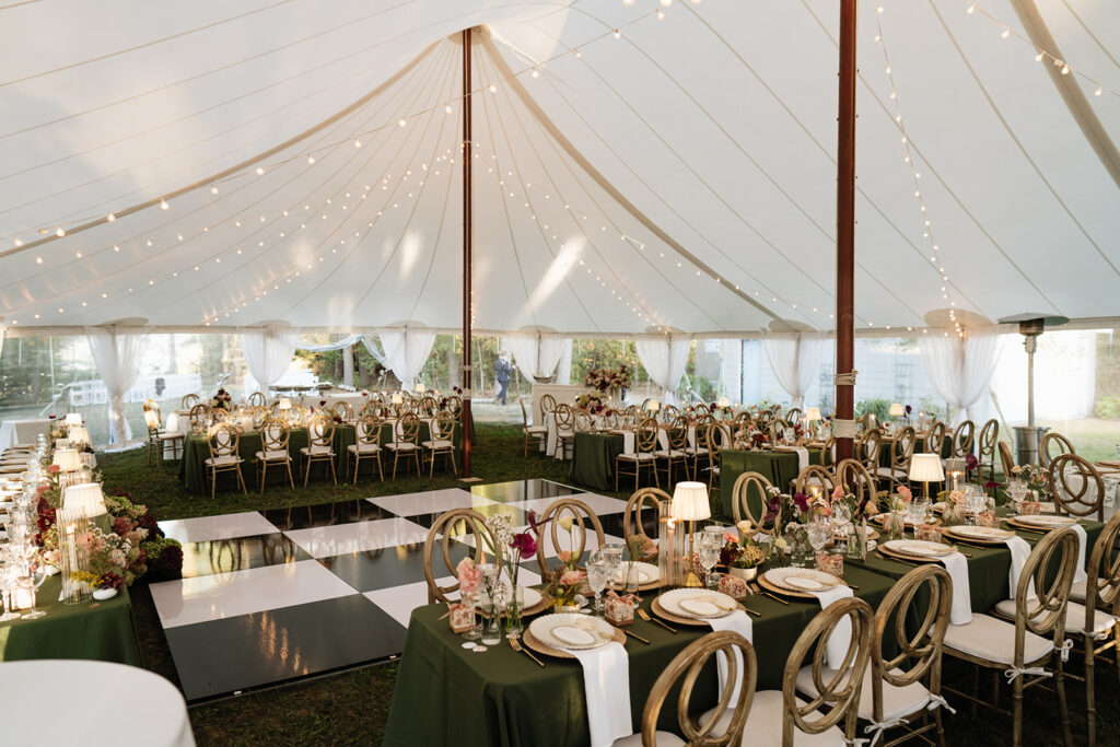 44’x63′ Sailcloth Tent, White String Globe Lighting, Modern White Bar, Natural Wood Infinity Chair, White Resin Folding Chair, 8ft Banquet Table, 6ft Banquet Table, 5ft Round Table, 42″ Bar Table.