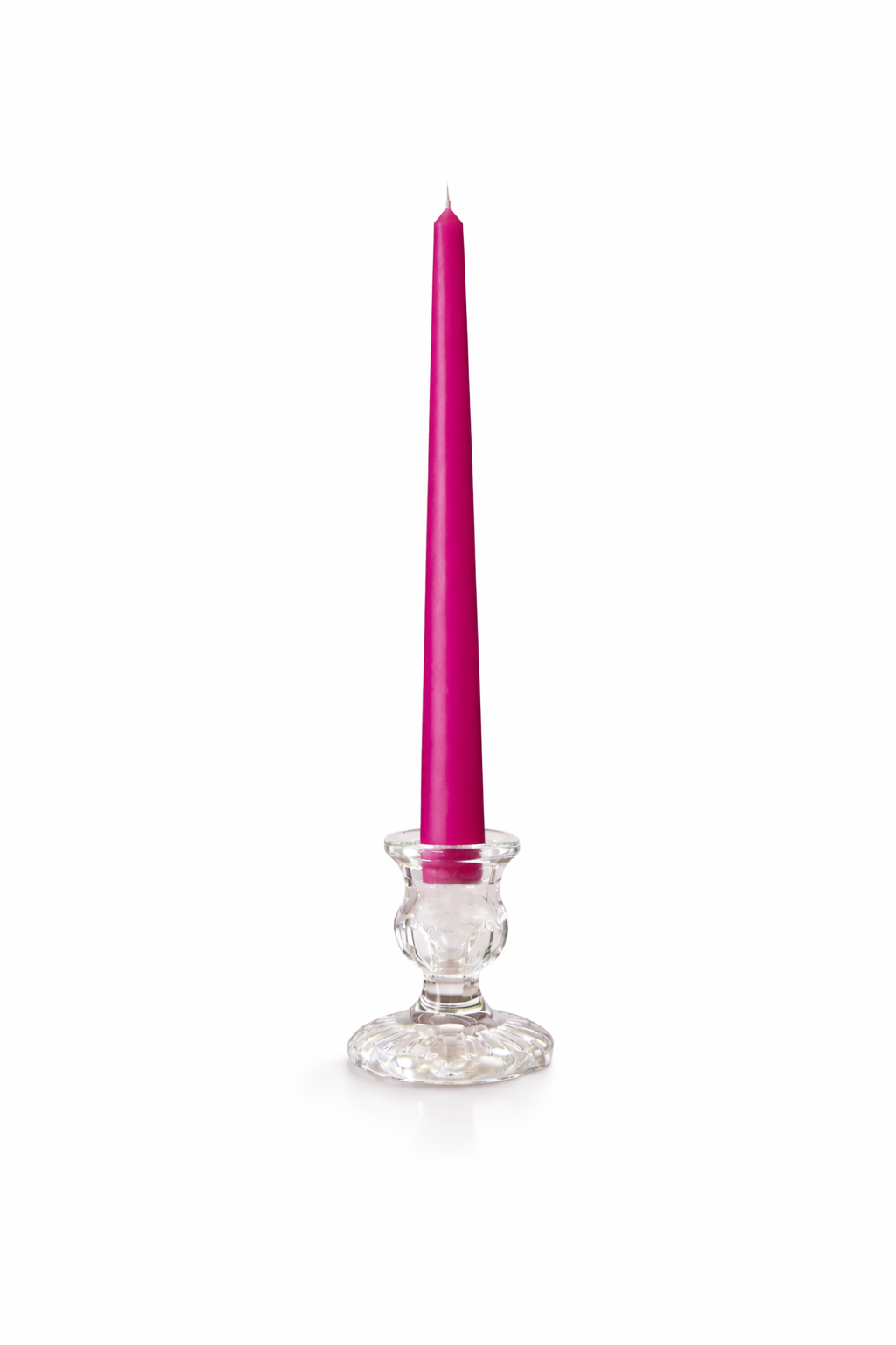 These 10″ magenta taper candles pair beautifully with crisp white or ivory linens and complement natural wood, soft greenery, dramatic florals, and gold or brass accents. Perfect for fall weddings, romantic celebrations, and bold modern events, they create a warm, glowing ambiance that enhances both daytime and evening settings.