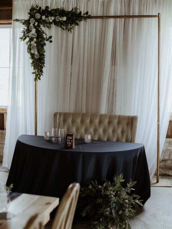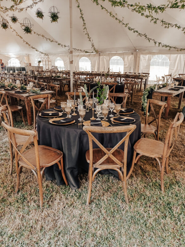 Make a bold statement with your wedding decor by incorporating our Black Polyester Linen rental into your design. Reserve yours today and let Valley Tent & Party Rentals Ltd help you create a memorable and stylish atmosphere for your special day.