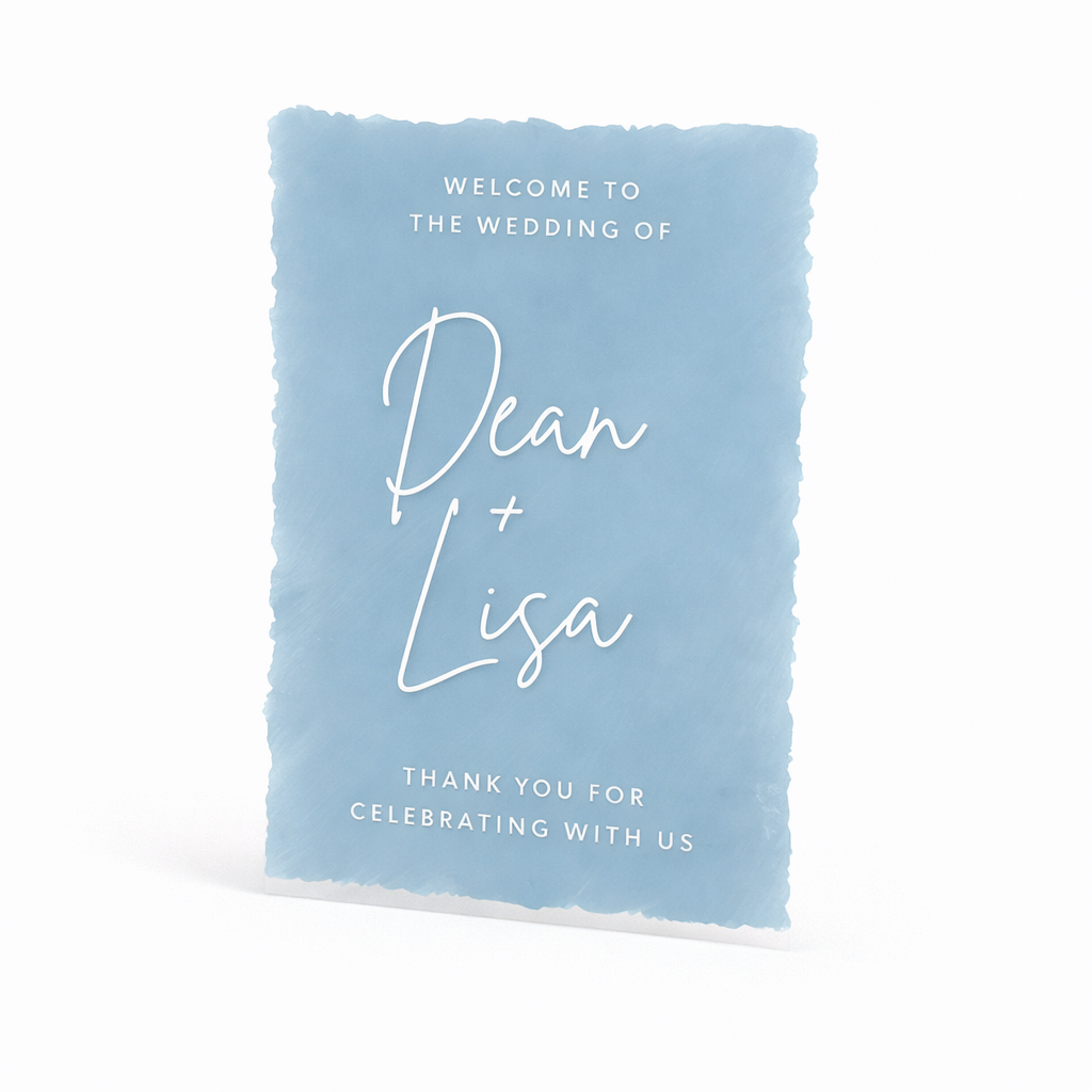 Create a uniform look throughout your wedding by incorporating more from our Dusty Blue plexiglass signage collection. This collection includes a welcome sign, memory sign, guest book sign, gifts and cards sign, as well as table numbers.