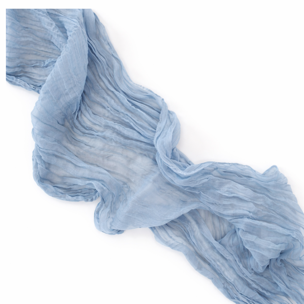 Discover the epitome of wedding decor rentals at Valley Tent & Party Rentals Ltd and transform your special day into an unforgettable celebration with our Dusty Blue Gauze Runner.