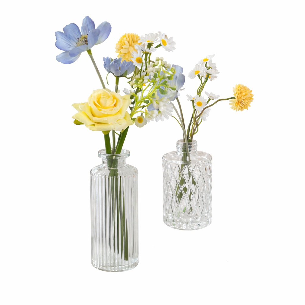 The Elise Silk Floral Bud Vase Collection brings a fresh, understated elegance to your event with soft shades of blue, yellow, and white that feel light, refined, and timeless. These silk bud vases by Valley Tent & Party Rentals Ltd are perfect for spring and summer weddings, bridal showers, intimate gatherings, baby showers, and more.
