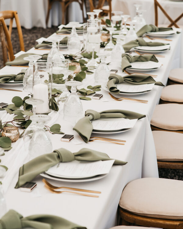 Welcome to Valley Tent & Party Rentals Ltd, your premier destination for exquisite event decor solutions! Elevate the natural charm and elegance of your wedding or special event with our Eucalyptus Polyester Napkin rental service. Thoughtfully selected to enhance your tablescape, these napkins exude timeless beauty and sophistication.