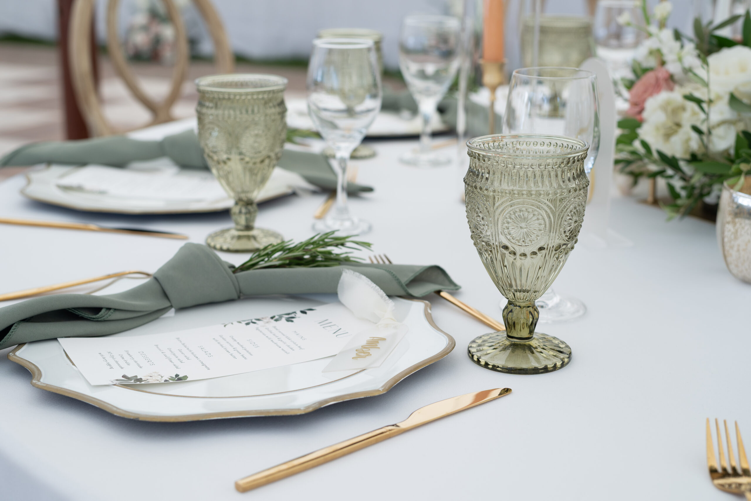Transform your celebration into a masterpiece with Valley Tent & Party Rentals Ltd’s Eucalyptus Vintage Water Goblet Rental. Contact us today to reserve these exquisite pieces and embark on a journey of timeless beauty for your special day.
