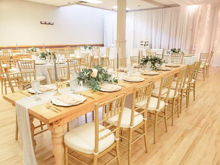 Elevate your event with the luxurious charm of our Gold Chiavari Chair rental. Contact us today to reserve these stunning chairs and create an unforgettable experience for you and your guests.