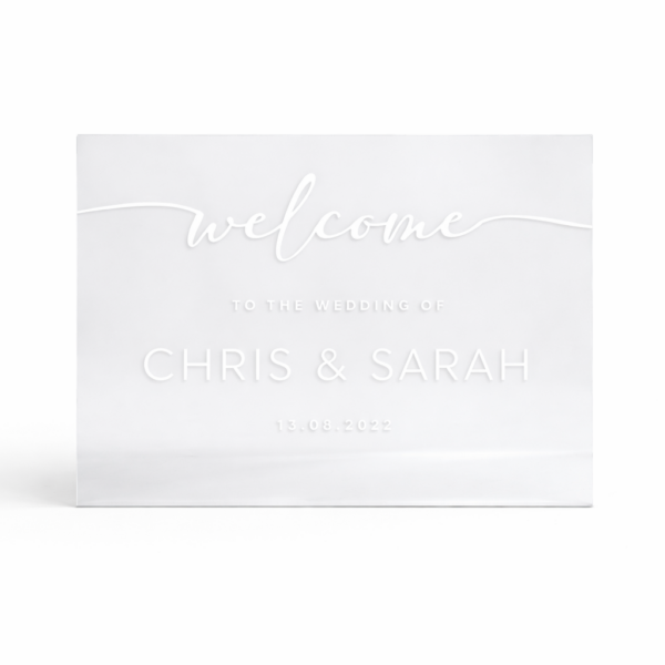 Make a statement with our welcome sign’s clear plexiglass, offering a contemporary and stylish introduction to your event.