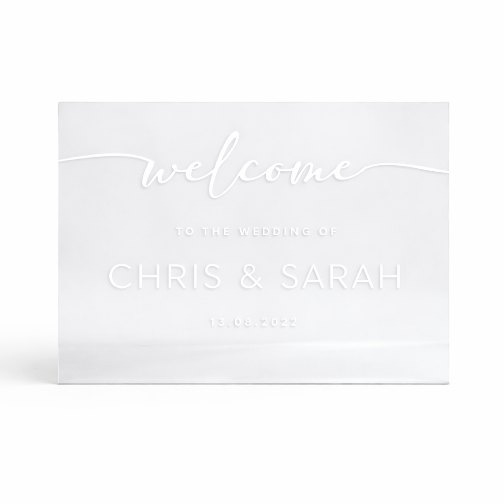 Tailor the welcome sign by adding your names and event date, ensuring that the signage adds a personalized touch to the occasion.