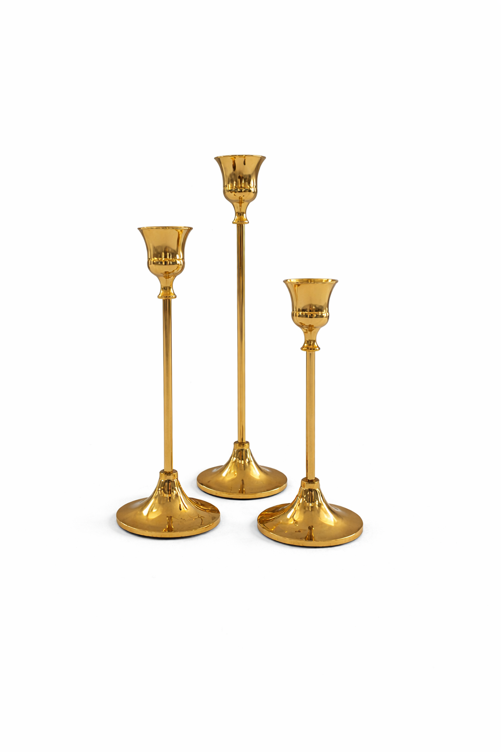 Available in three sizes – 5.9″, 7.3″, and 9.3″ – our gold taper candle holders offer versatility to suit various setups and styles. Whether planning an intimate gathering or a grand celebration, tailor these candle holders to meet your specific needs. Create a captivating atmosphere by incorporating different heights. Use our taper candle holders to build dimension and visual interest throughout your space.