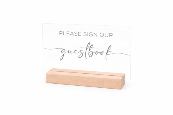 Our guest book signs showcase the beauty of clear plexiglass. This creates a stylish and modern aesthetic that enhances the overall charm of your event.