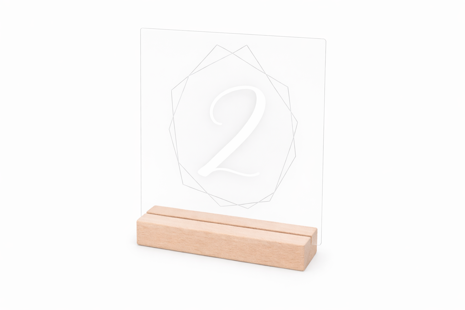 Elevate your tables with our clear plexiglass table numbers, offering a sleek and sophisticated look for a seamless fit with any decor.