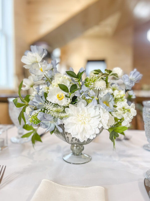 Impeccably crafted with high-quality silk flowers, the Olivia arrangement exudes the allure of fresh blossoms while ensuring durability throughout your event.