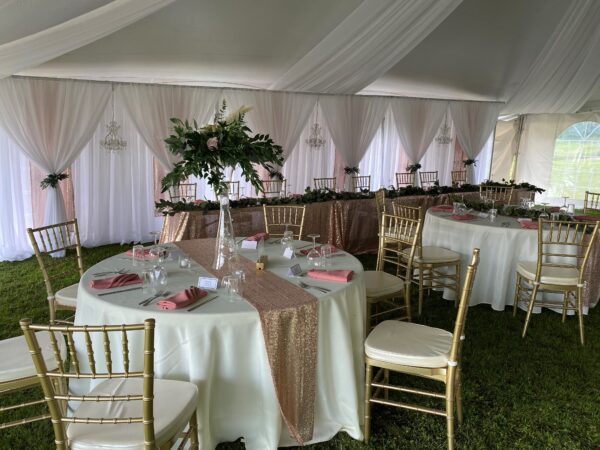 Book your sequin table runner rental today and let us help you create the wedding of your dreams with Valley Tent & Party Rentals Ltd.